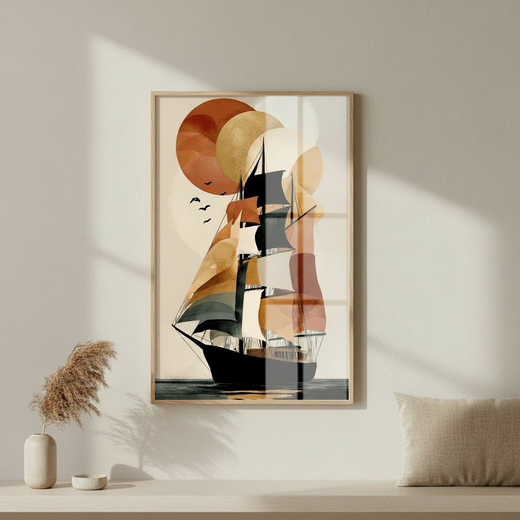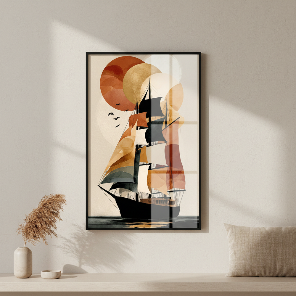 Abstract Sailing Ship Sunset Canvas Wall Art