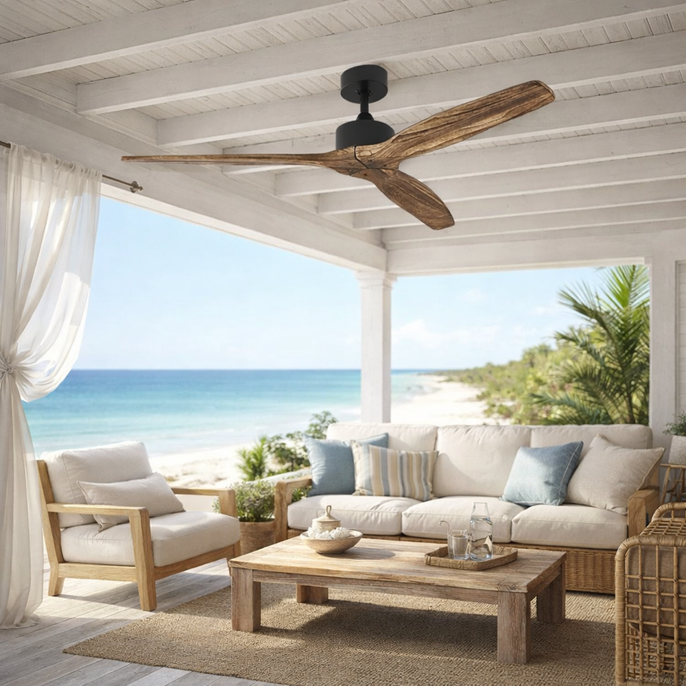 Modern Ceiling Fan with Solid Wood Blades, 52-inch