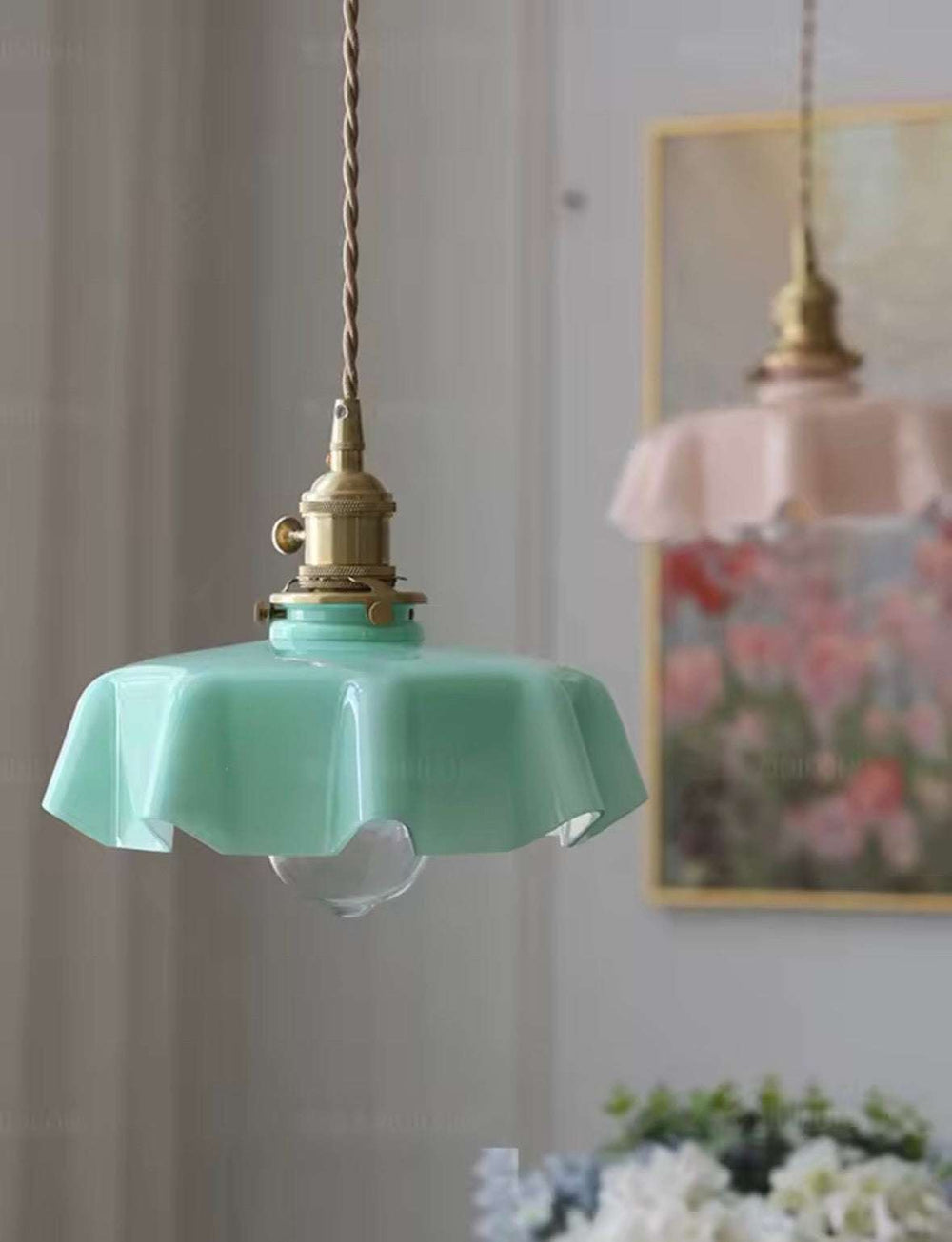 Vintage Glass Pendant in Mint Pink & White color