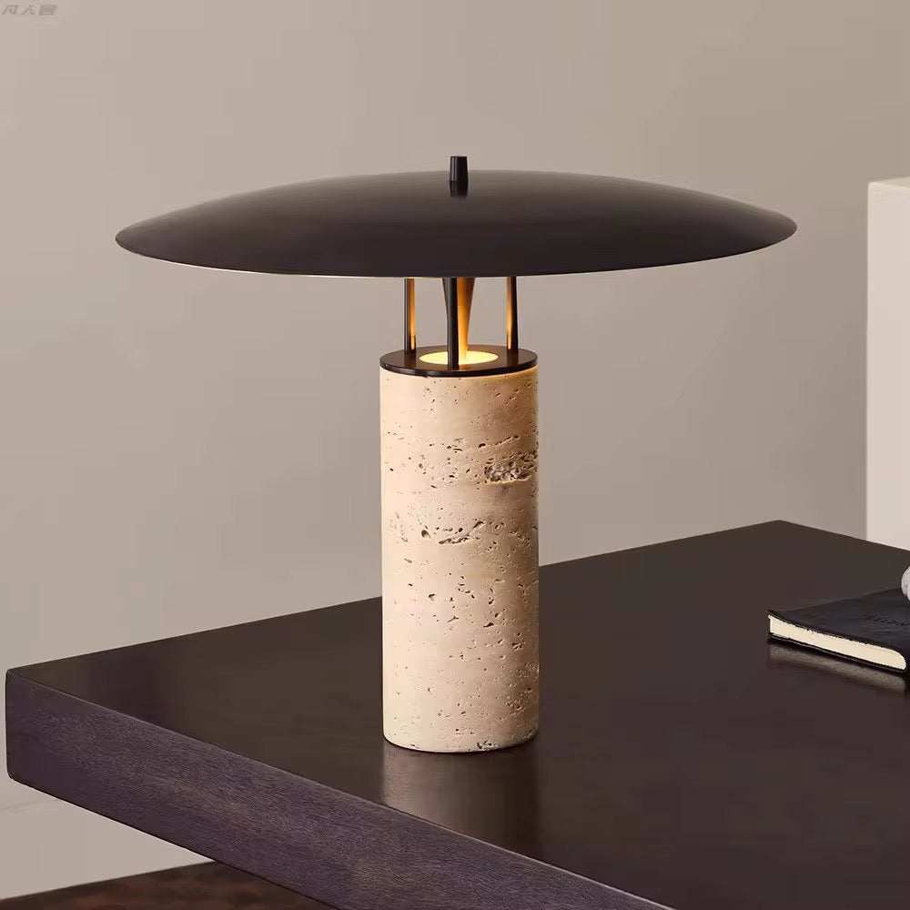 Terra Halo - Travertine Column Table Lamp
