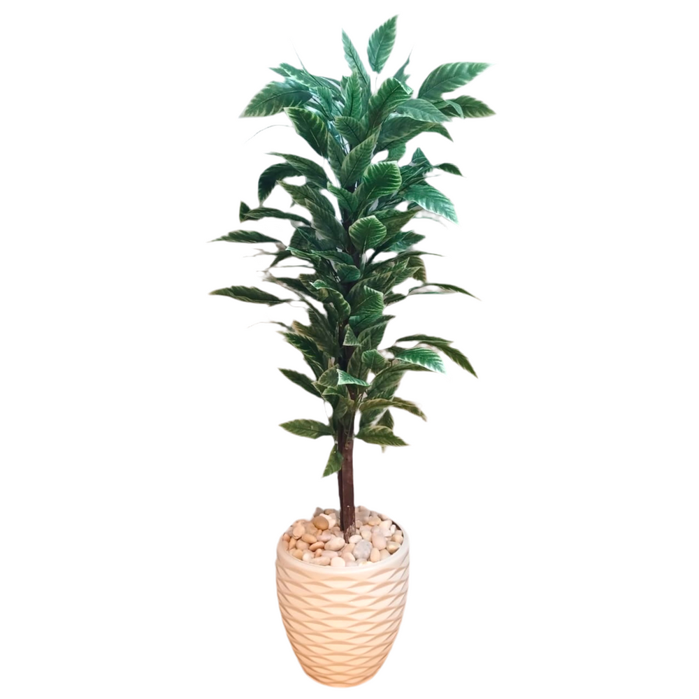 Artificial Broad Leaf Tree in Tall White Textured Pot