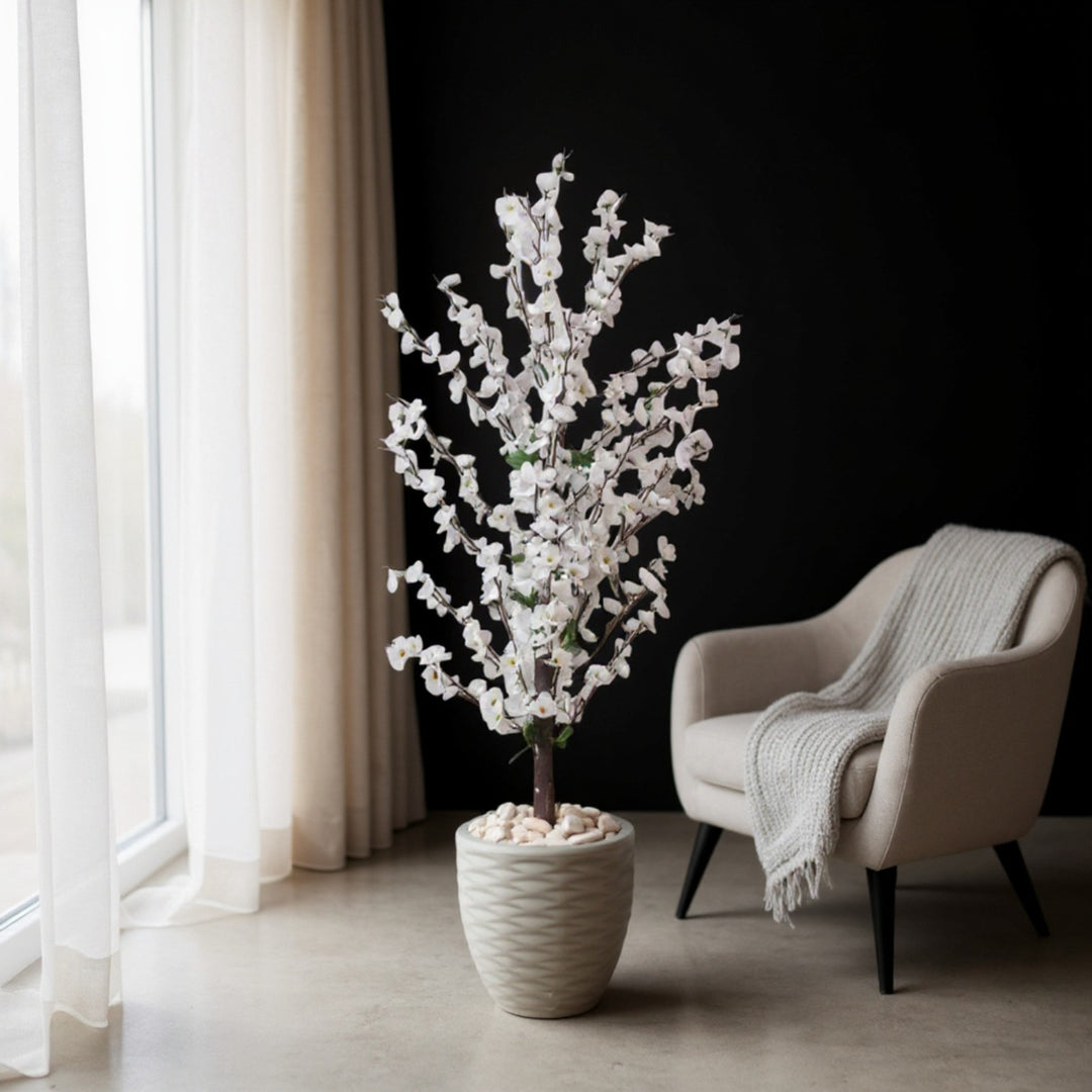 Artificial Soft Sakura Blossom in Ribbed Pot