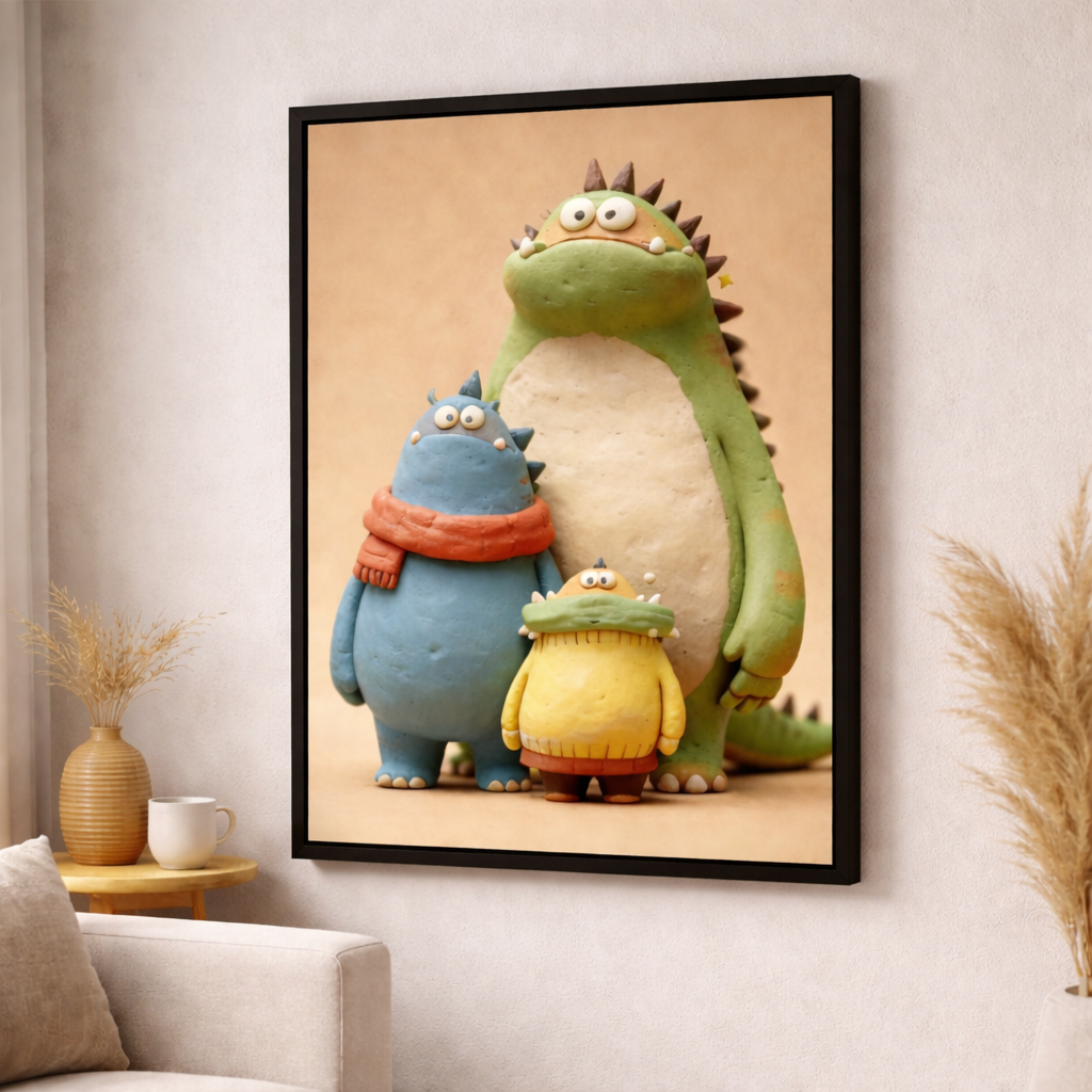 Charming dinosaur family artwork printed on premium Framed. Featuring soft pastel colors and playful characters, this Framed adds warmth and joy to kids’ rooms, nurseries, or cozy family spaces.
