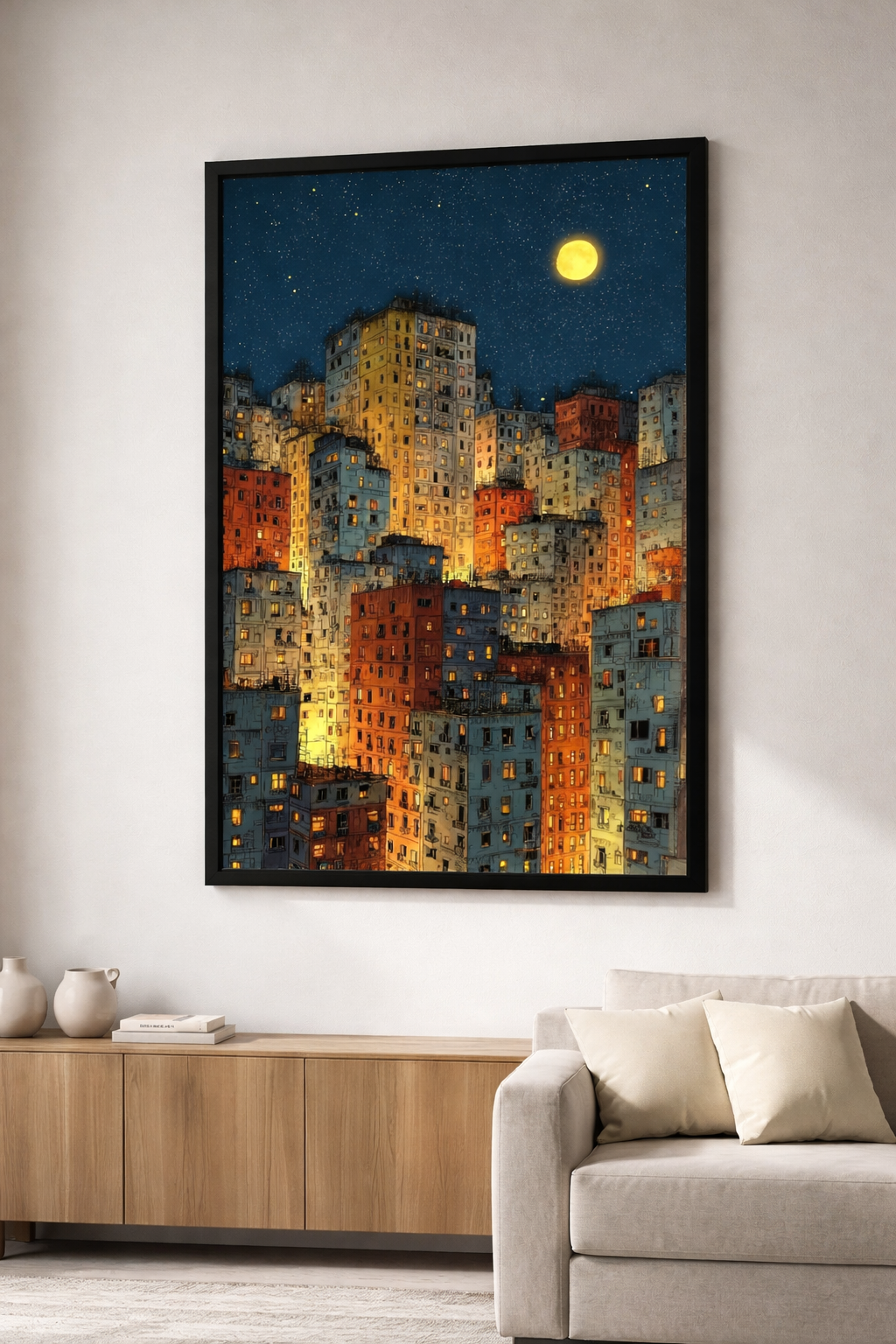 Moonlit Cityscape Framed Wall Art