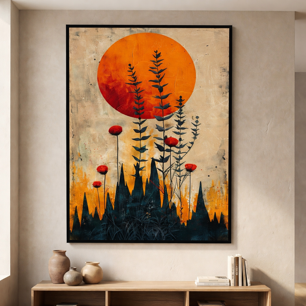 Abstract Botanical Sunset Framed