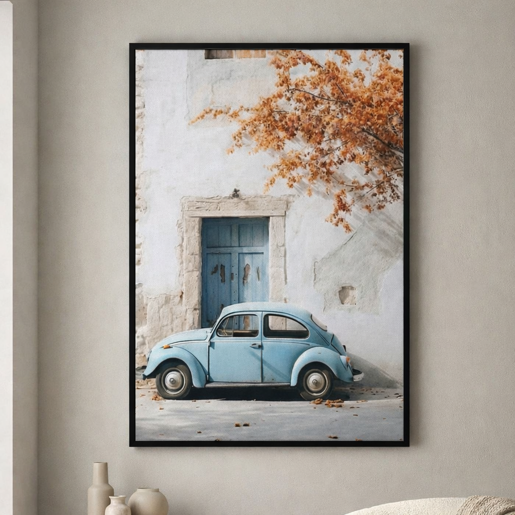 Vintage Blue Car Wall Framed