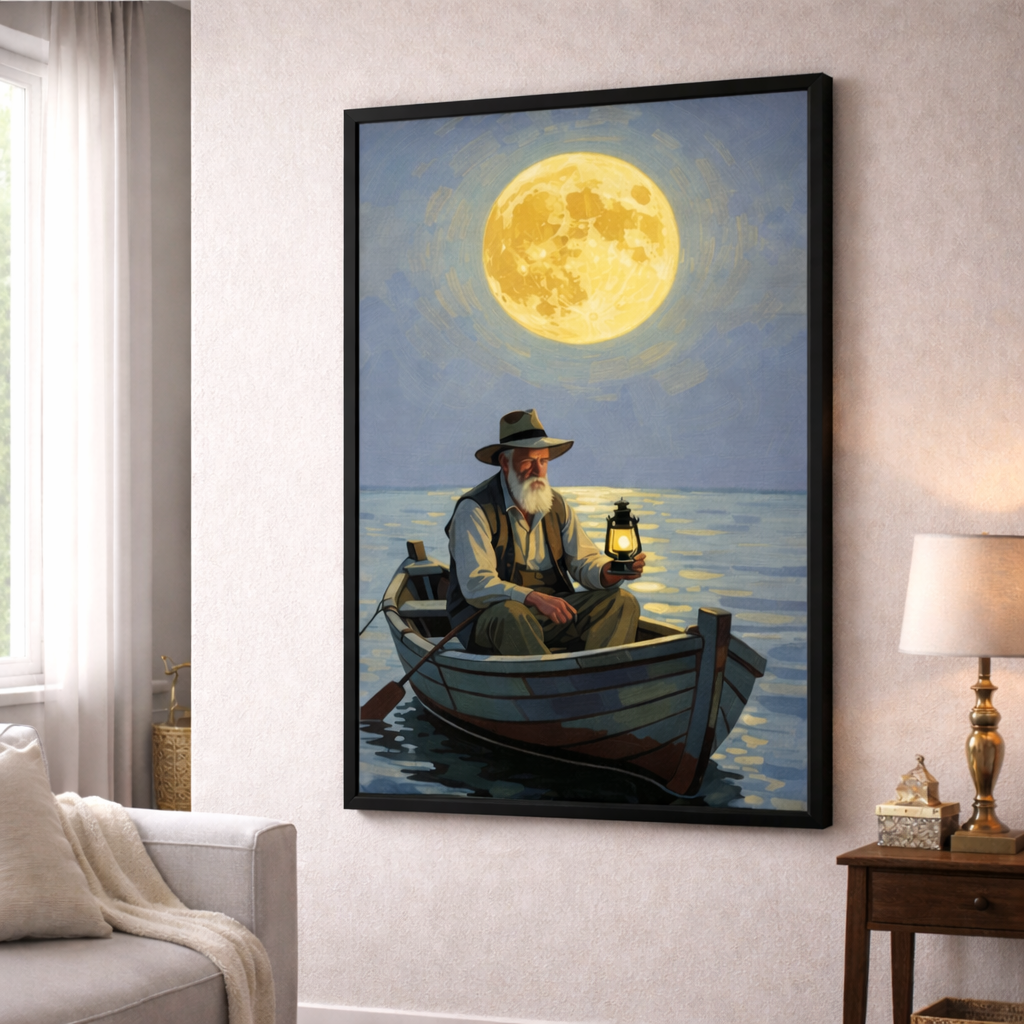 Moonlit Fisherman Framed