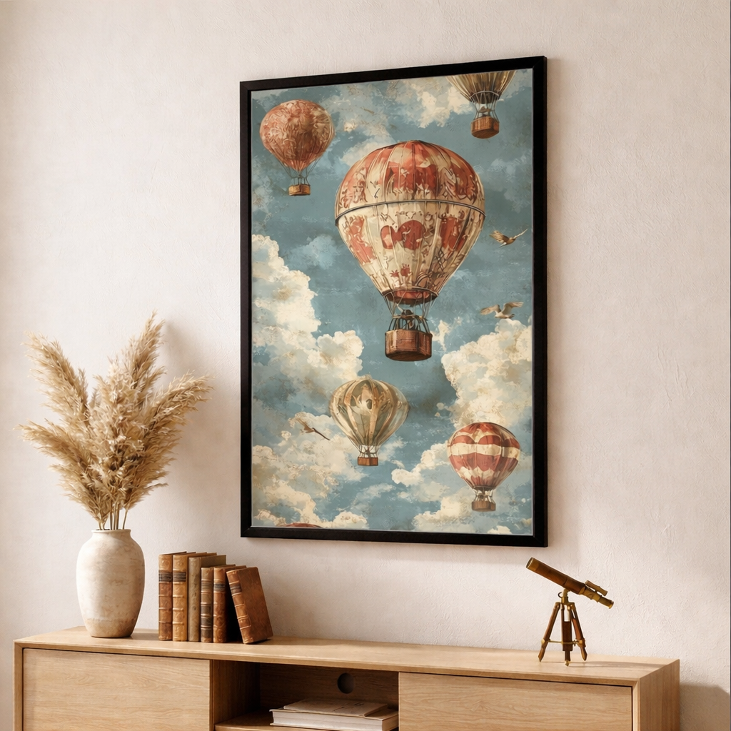 Vintage Hot Air Balloon Framed Art