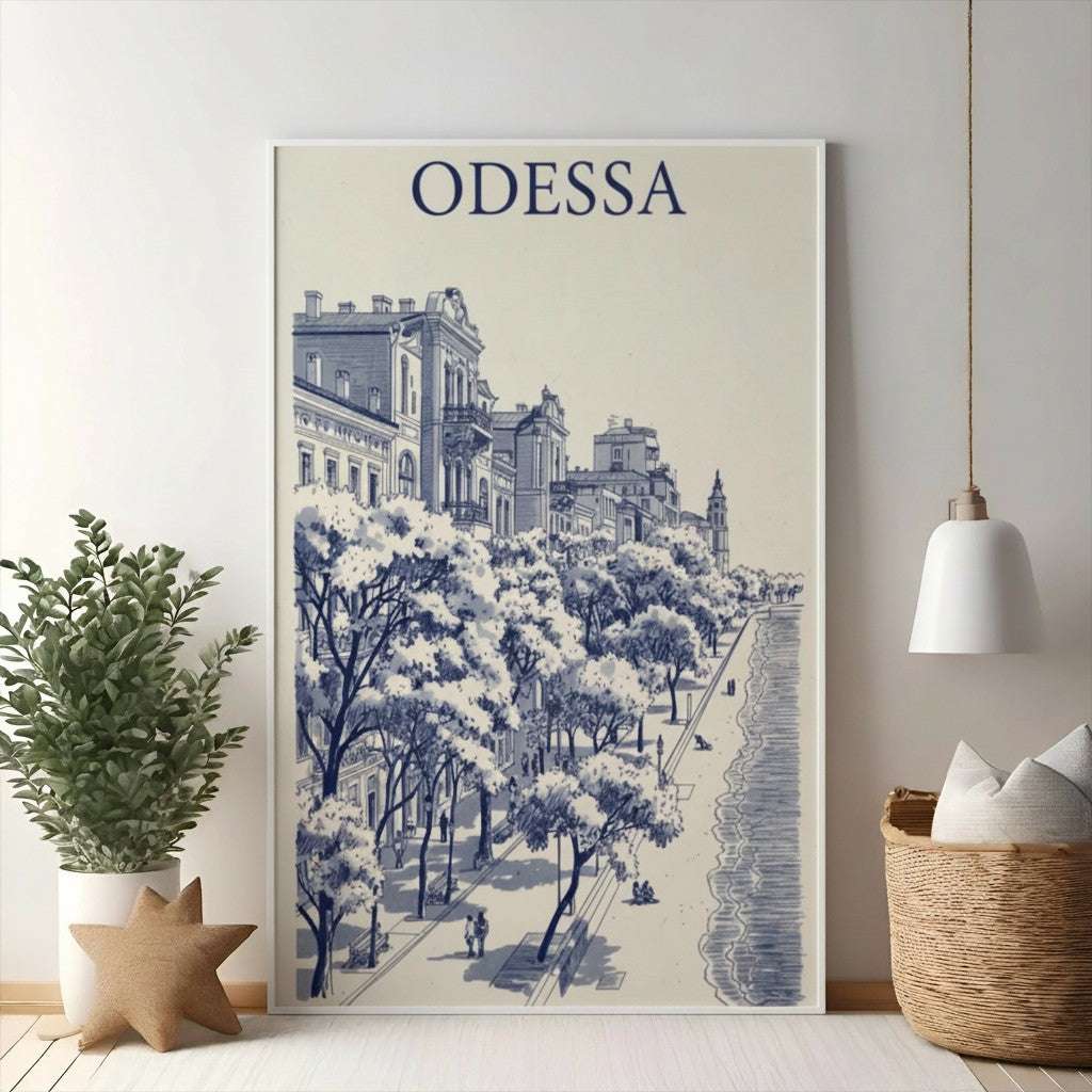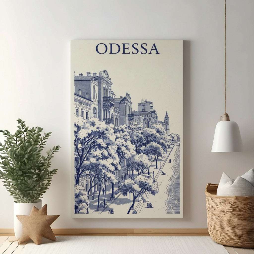 Bring the charm of the Black Sea coast into your home with this exquisite Odessa cityscape sketch. Rendered in a classic blue and white palette, this artwork captures the architectural beauty and serene promenade of Odessa. The detailed sketch style evokes a timeless elegance, perfect for adding a touch of European sophistication to any room. Ideal for art lovers and travel enthusiasts, this piece serves as a beautiful reminder of coastal journeys or a dream destination. Elevate your decor with this stunning piece of travel-inspired wall art.