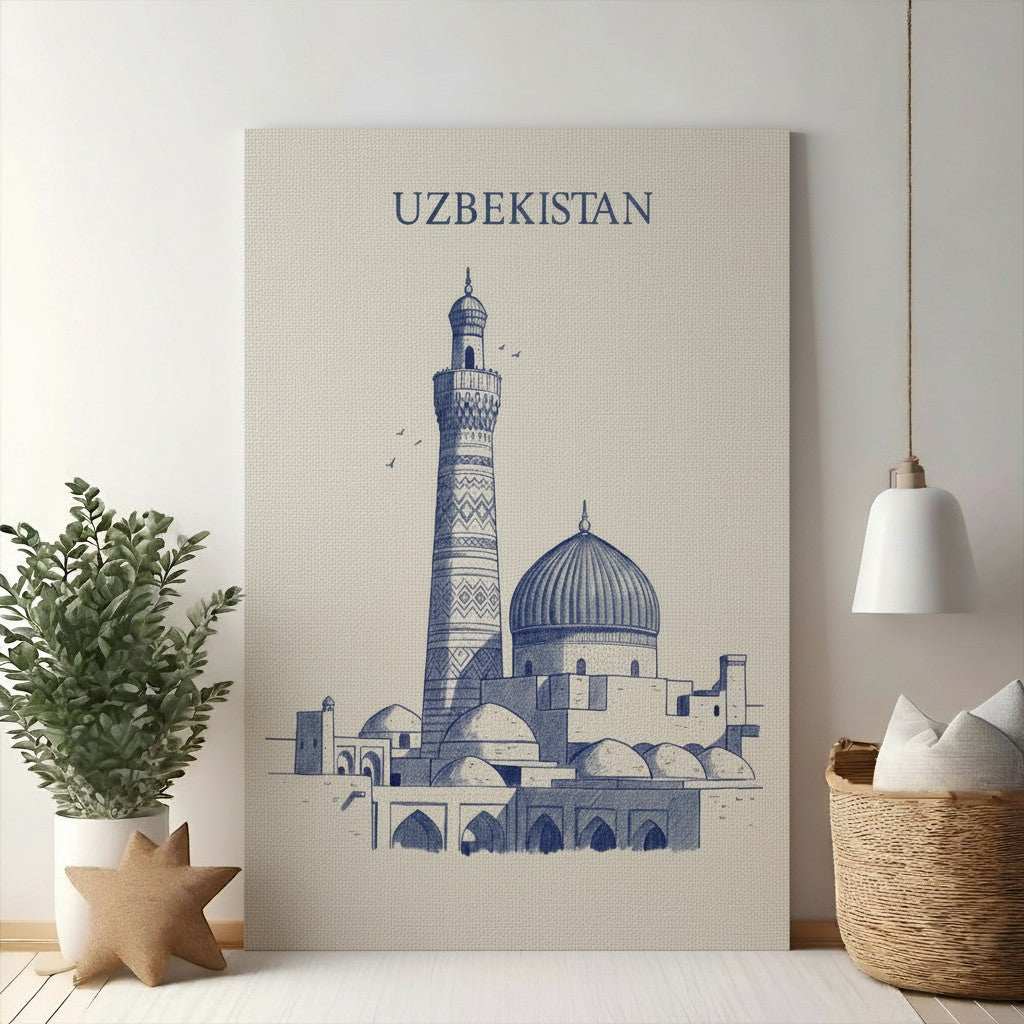 Bring the rich history and stunning architecture of Uzbekistan into your home with this exquisite sketch. Featuring a detailed blue ink illustration of iconic landmarks, this artwork captures the intricate beauty of minarets and domes. Perfect for adding a touch of cultural elegance to any room, this piece serves as a beautiful reminder of Central Asian heritage. Ideal for art lovers and travel enthusiasts, this sketch is a unique way to celebrate global landmarks.