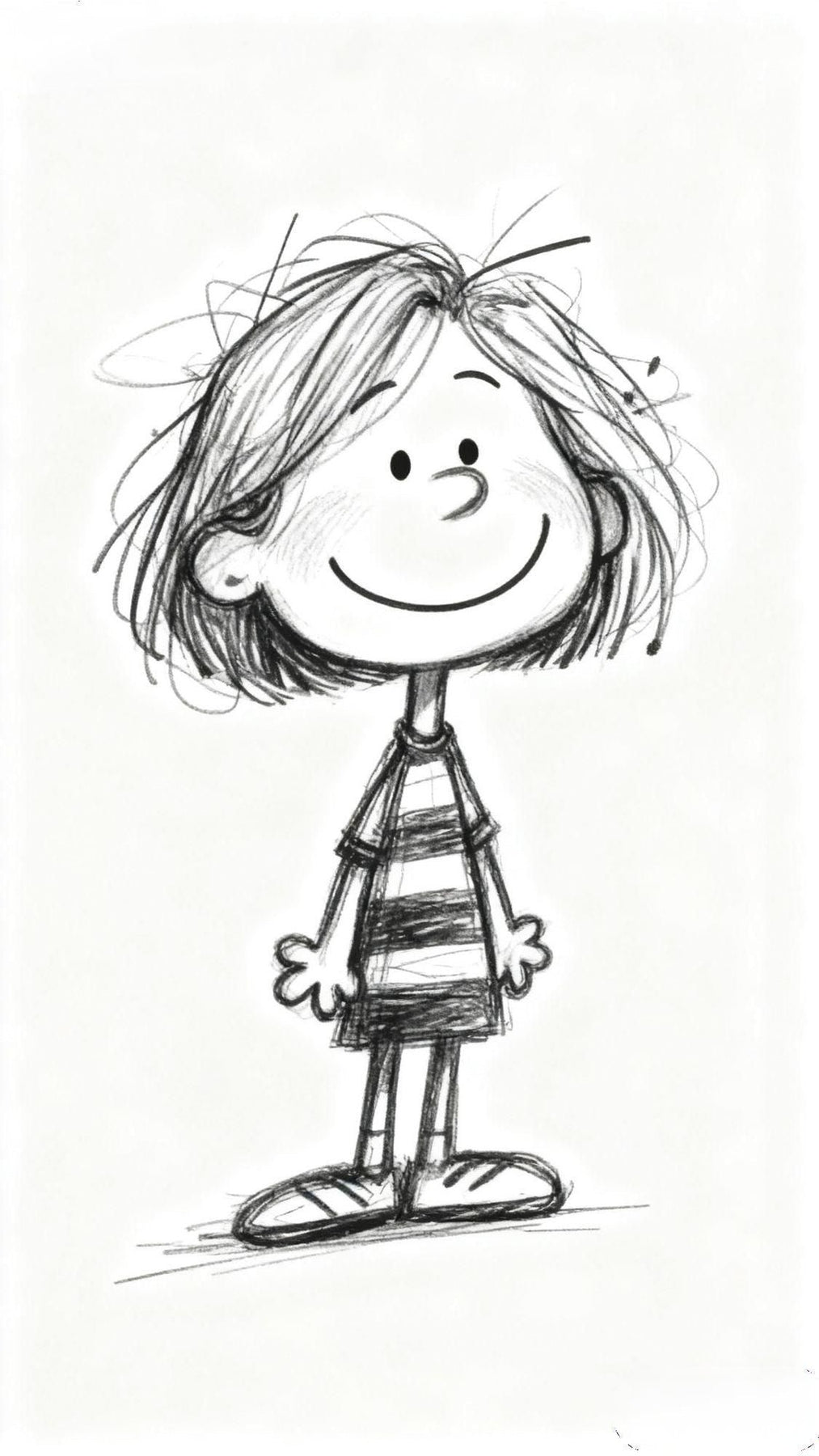 A minimalist hand-drawn child illustration with playful sketch lines and a warm smile. This charming black-and-white canvas adds softness and joy to nurseries, playrooms, and modern kids’ spaces.