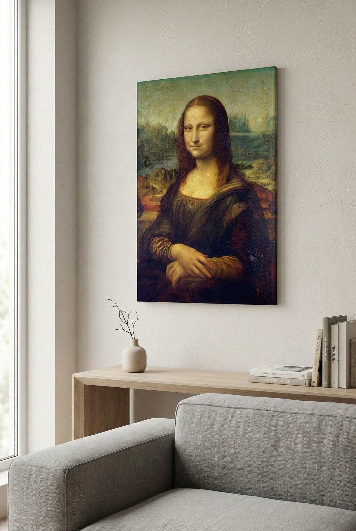 This timeless canvas artwork showcases the iconic Mona Lisa portrait, celebrated for its elegance, mystery, and artistic mastery. A refined statement piece that adds cultural depth and classic sophistication to living rooms, offices, libraries, and modern interiors.