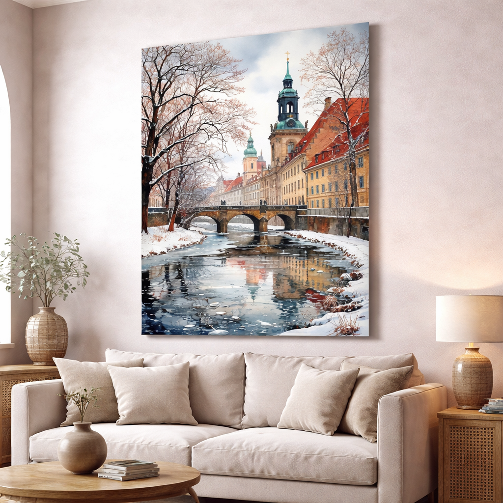 Winter European Canal Canvas