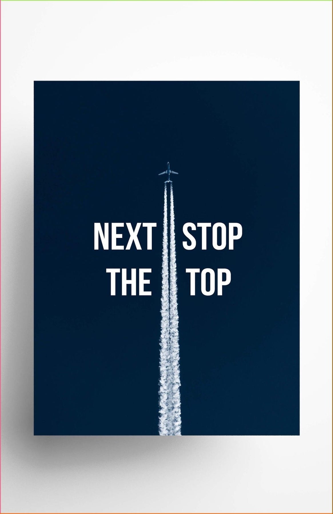 Dark blue aviation-themed motivational canvas with upward success message.