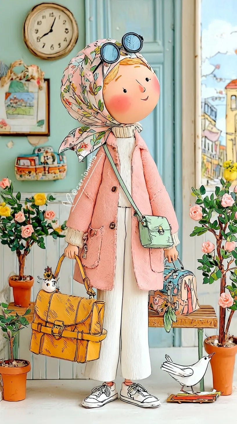 Stylish Girl Traveler Canvas Art