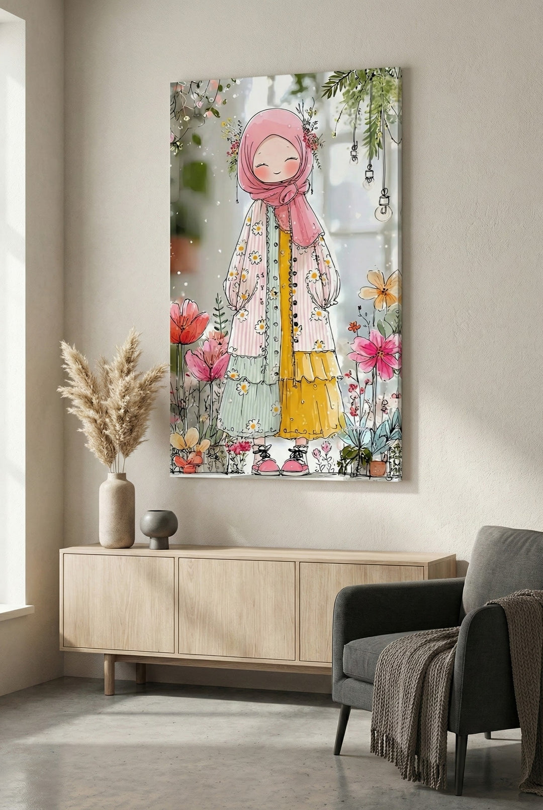 Floral Hijab Girl Canvas Art