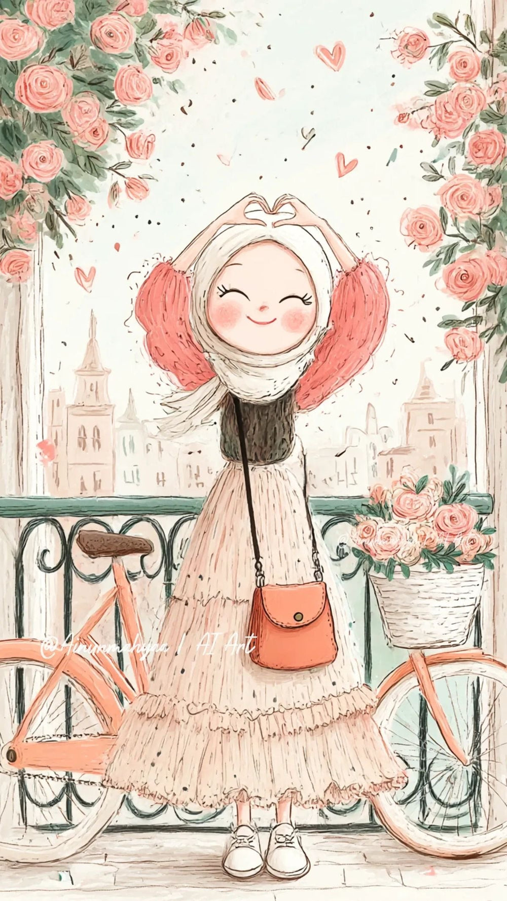 Romantic Girl with Bicycle Canvas Art