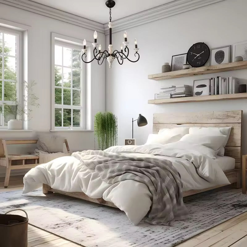 This elegant vintage chandelier features a white and black finish, offering a classic look with six light fixtures, perfect for rustic or farmhouse-inspired spaces.