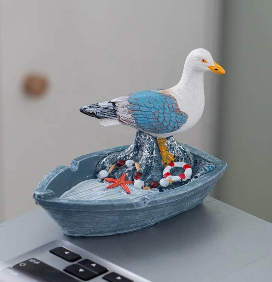 Bring a touch of the seaside into your home with this detailed seagull on boat figurine. Perfect for adding a coastal charm to your living space, desk, or shelf display.