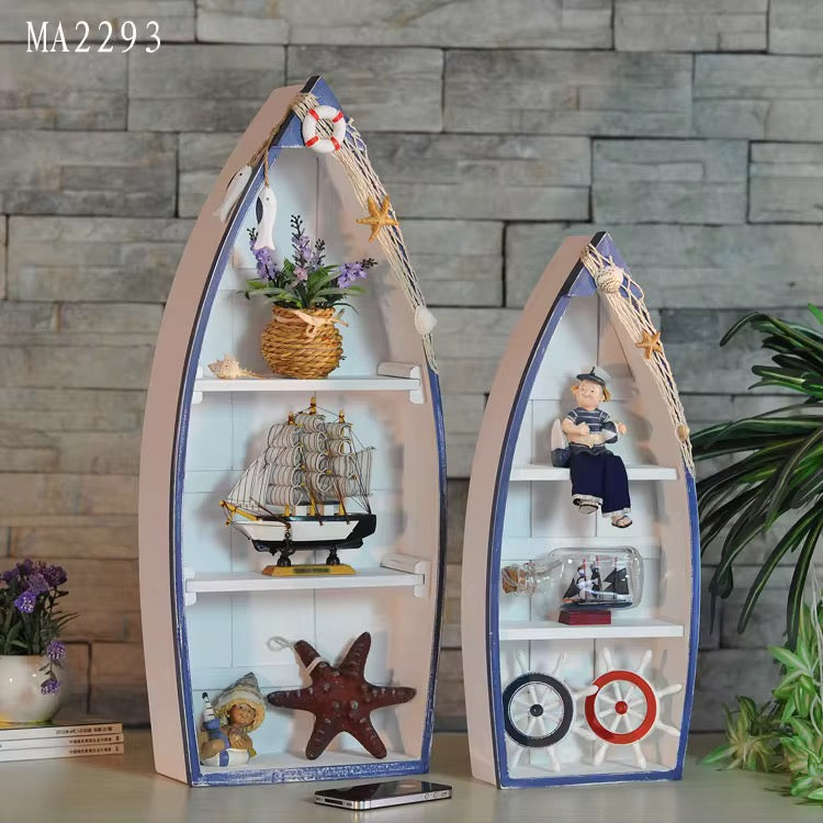 Nautical Boat-Shaped Wooden Shelf Set