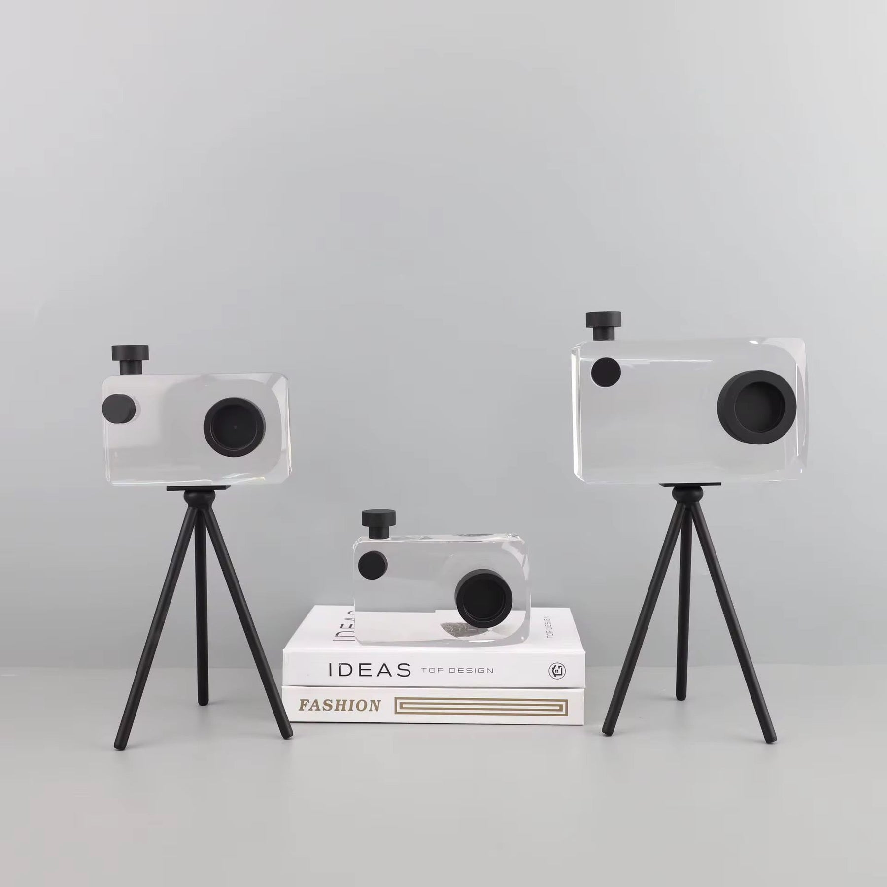 Capture the essence of creativity with this crystal camera sculpture set. Made from transparent acrylic with minimalist black details, these decorative pieces bring a modern artistic touch to desks, shelves, or studio spaces.