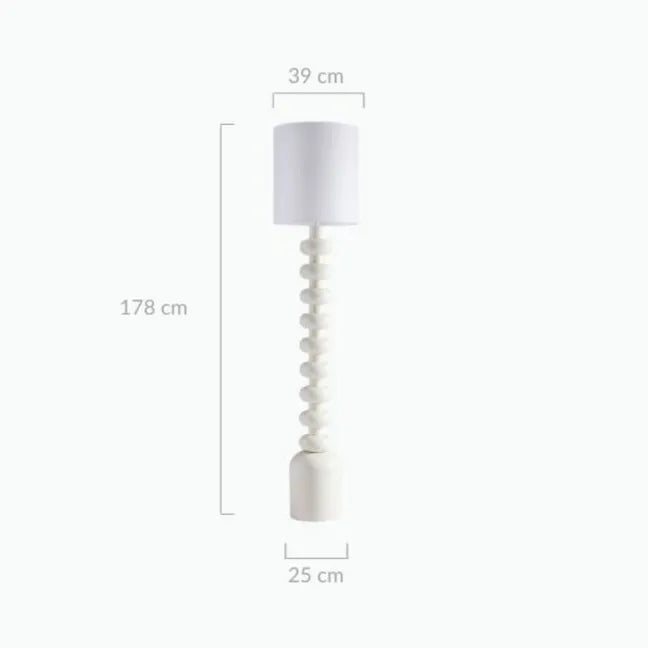 A stylish floor lamp featuring a stacked stone-inspired base with a simple cylindrical fabric shade. Perfect for adding natural elegance to modern or rustic interiors.
