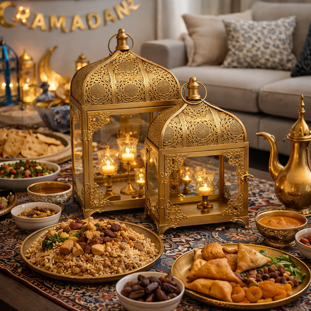 Modern Wood & Chrome Lantern Set (3-Piece)