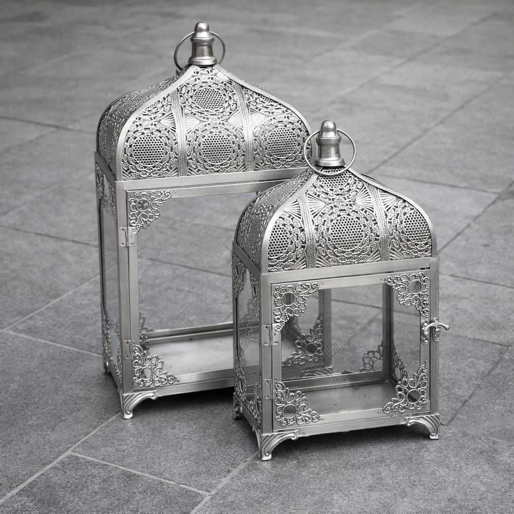 Vintage Moroccan Gold or silver Metal Lanterns (Set of 2)