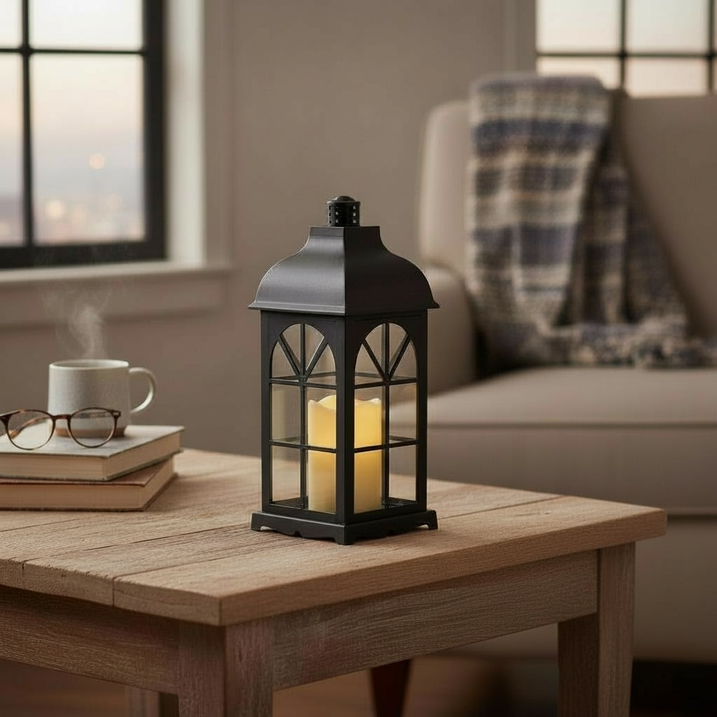 Bring timeless charm to your space with this classic black LED lantern. Designed with a traditional window-frame silhouette, it features a realistic flickering LED candle that creates a warm, cozy glow. Ideal for living rooms, bedrooms, or covered outdoor areas—no flame, no smoke, just ambiance.