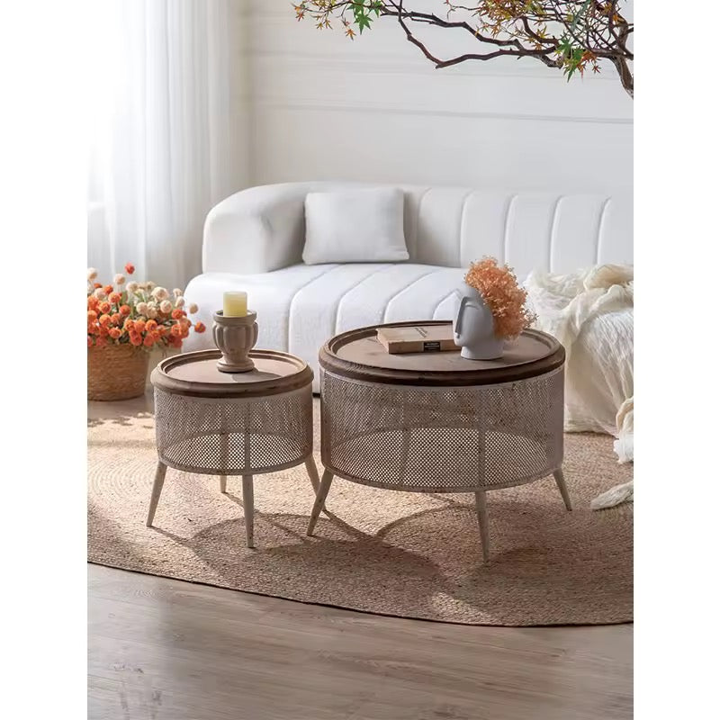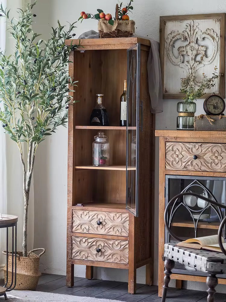 Vintage Birdcage-Style Tall Cabinet with Wooden Accents