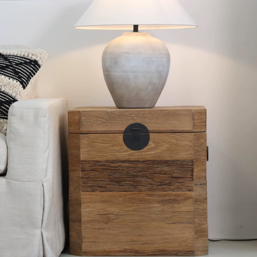 Rustic Wooden Wall Shelf with Decorative Tile Panels