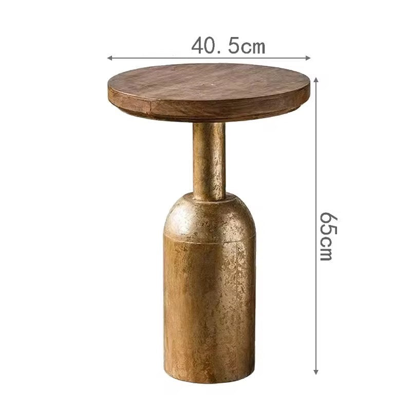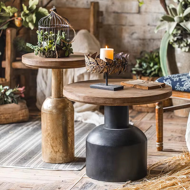 A stylish duo of pedestal side tables featuring solid wooden tops and industrial-inspired metal bases. Ideal for rustic, farmhouse, or urban interiors.