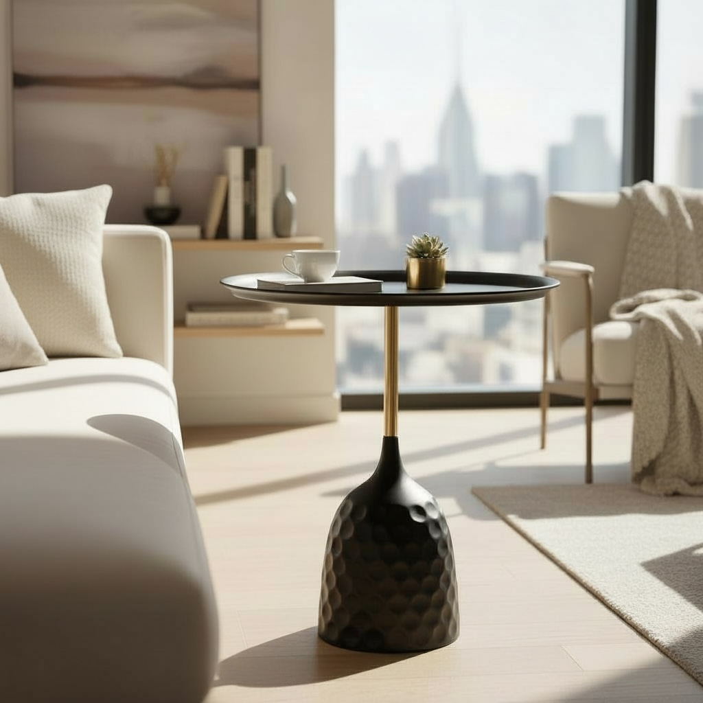 Metal Top Black Side Table