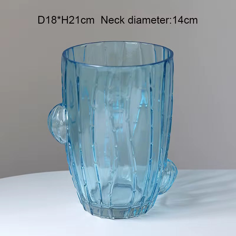 Add a refreshing touch to your décor with this cactus-inspired green glass vase set, featuring textured vertical ridges and rounded side accents.