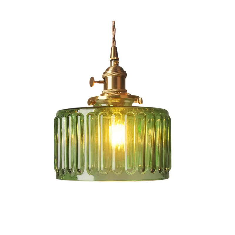 Green & Clear Ribbed Glass Pendant Light