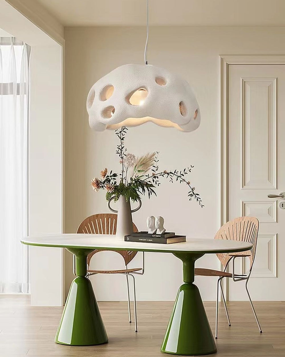 This Sculptural Pendant Light features an organic cloud-like design in a smooth white finish. Its artistic shape adds a unique and modern touch to dining areas, living rooms, or home offices. The pendant light creates a beautiful play of light and shadow, making it a focal point in any space while offering soft, ambient lighting.