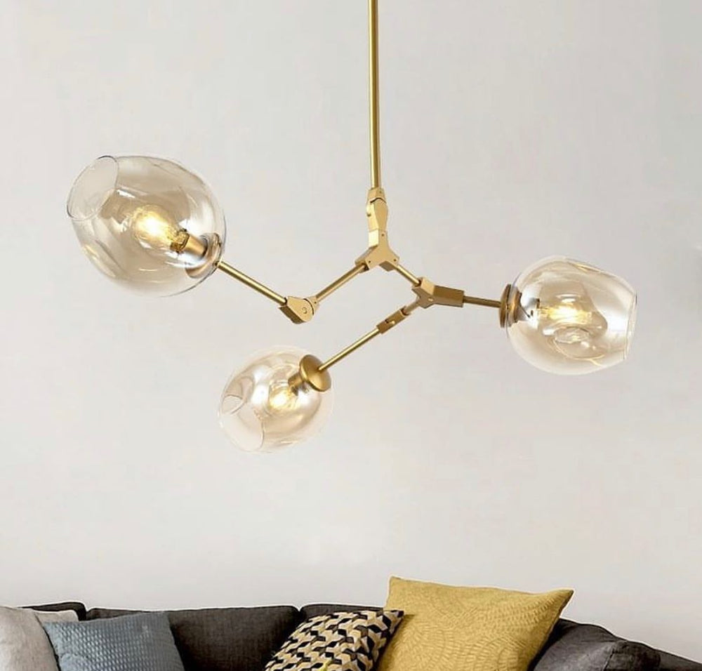 Enhance your home decor with this sleek and modern ceiling chandelier featuring three clear glass globes and a gold finish. Perfect for contemporary living rooms or dining areas, this light fixture offers both style and functionality.