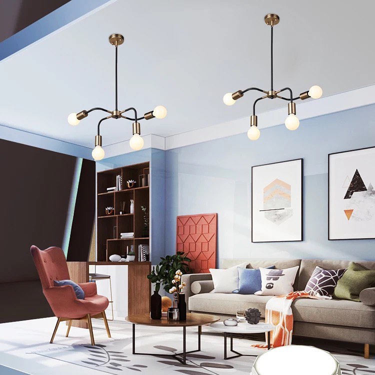This contemporary 5-light chandelier features a brass finish and stylish curved arms, ideal for adding a touch of elegance to your living or dining room.