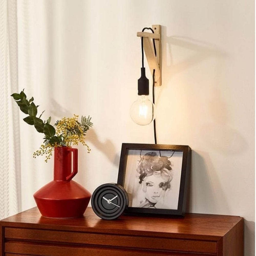 Bring a touch of Scandinavian simplicity to your space with this wall light. Featuring a natural wooden mount and an exposed bulb design, it adds warmth and charm to bedrooms or living areas.