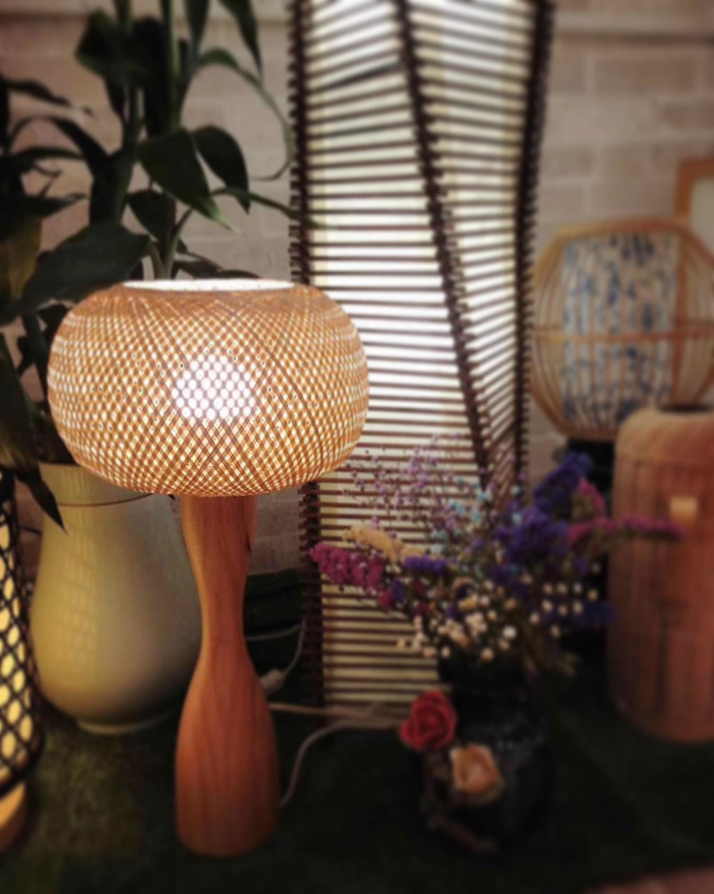 Illuminate your space with this charming rustic wooden table lamp. Featuring a beautifully crafted base and a woven natural material shade, it creates a warm and inviting atmosphere, perfect for living or dining rooms.