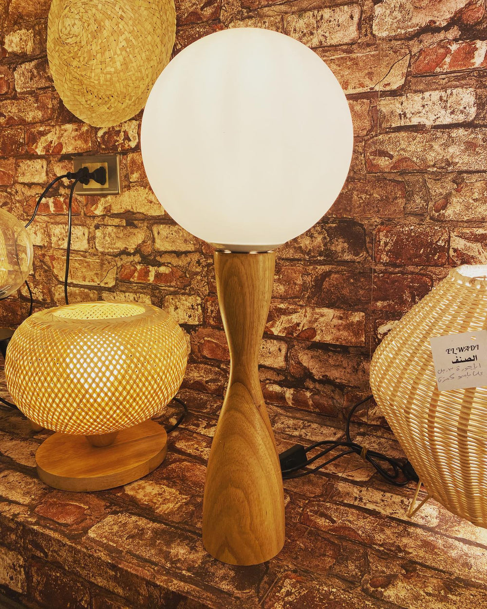 Elevate your interior with this modern table lamp featuring a beautifully sculpted wooden base and a sleek white globe shade. Perfect for adding a warm and inviting touch to any room.