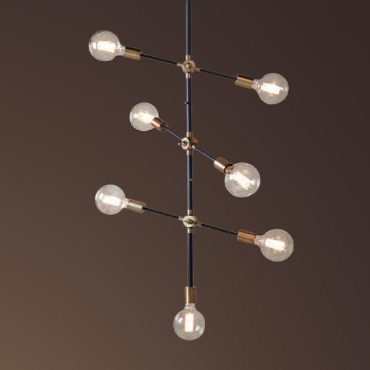 Make a modern statement with this vertical branch-style chandelier. Featuring sleek black rods and brass accents with exposed bulbs, it adds sophistication to dining or living areas.