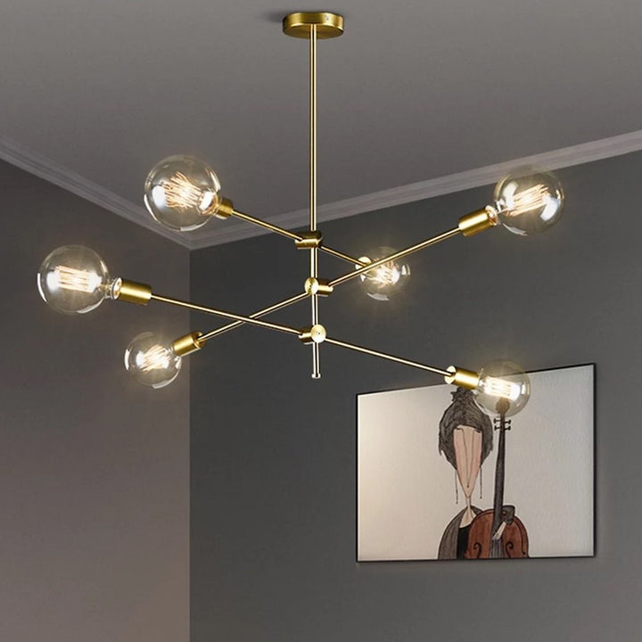 Elegant modern chandelier featuring a branch-style design with a luxurious gold finish and globe bulbs. Perfect for adding sophistication to living or dining spaces.