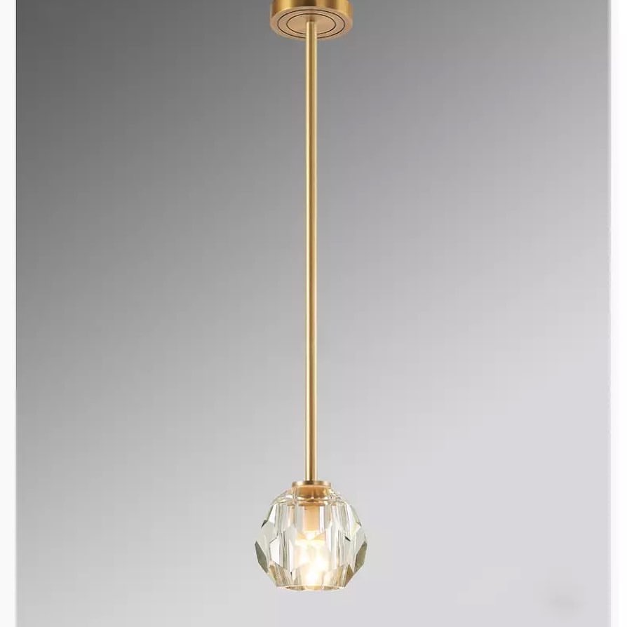 Enhance your space with this luxurious modern pendant light. Featuring a stunning faceted crystal shade and a sleek gold finish, this light adds elegance and sophistication to dining areas, bedrooms, or hallways. A perfect choice for creating a warm and inviting ambiance.
