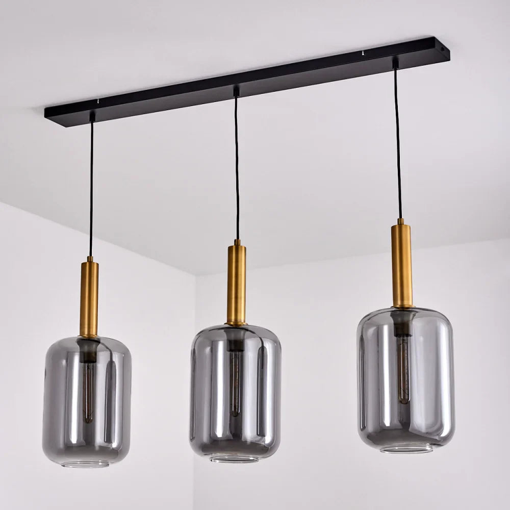 Elegant Smoked Glass Pendant Light Set with Gold Accents