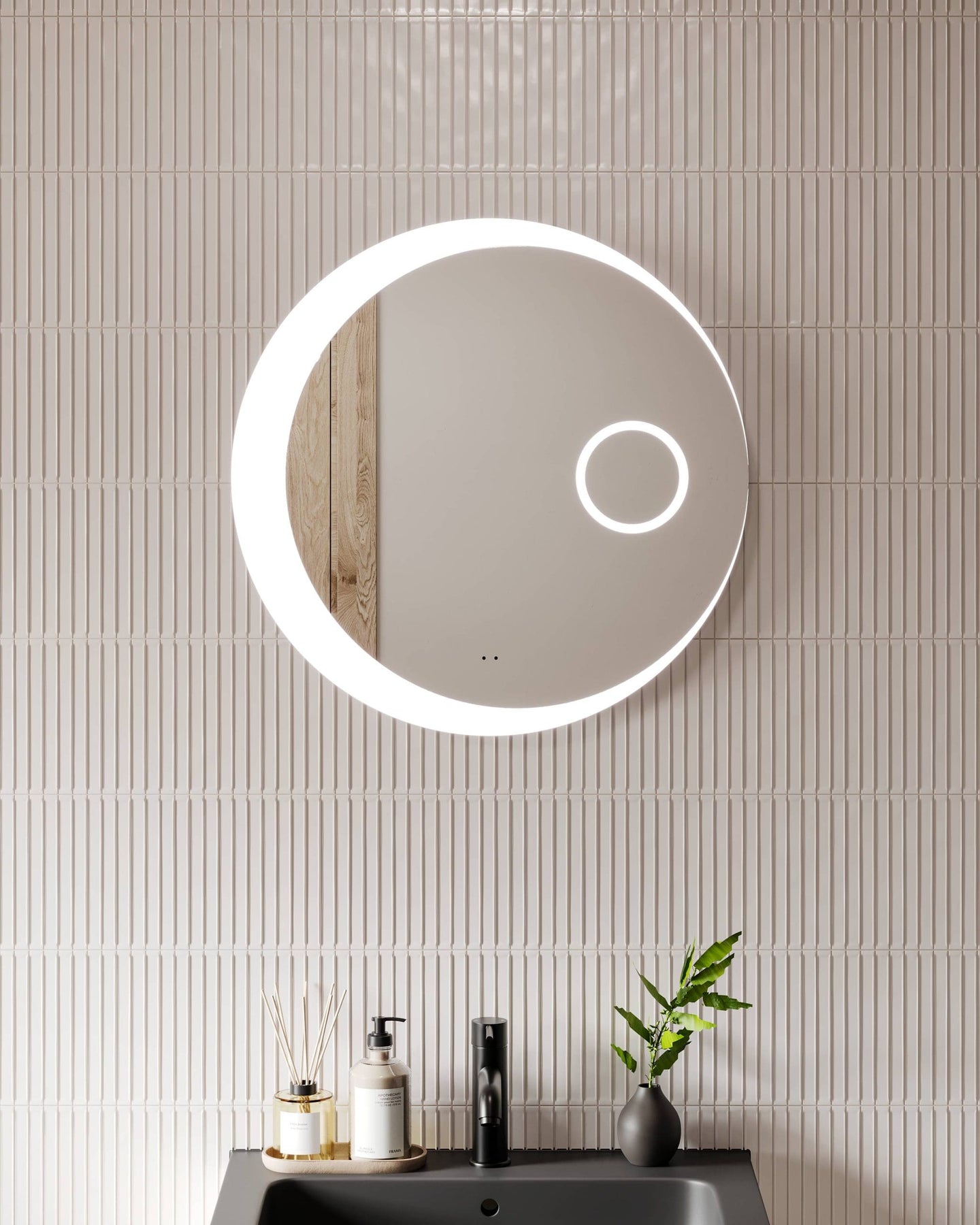 Illuminate your space with the Celeste LED Mirror, featuring a refined circular design and soft ambient halo lighting. Perfect for bathrooms and dressing areas, it blends modern elegance with flawless illumination.