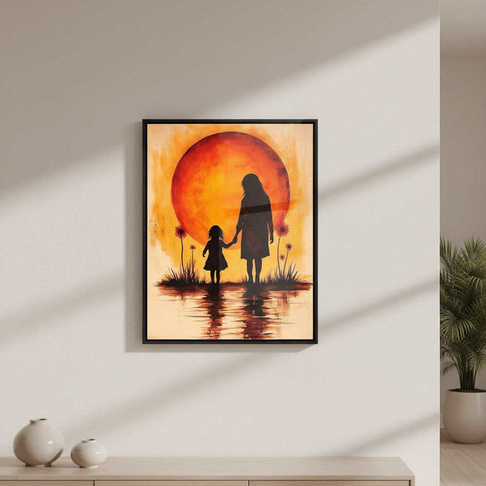 Mother and Daughter Sunset Silhouette Canvas