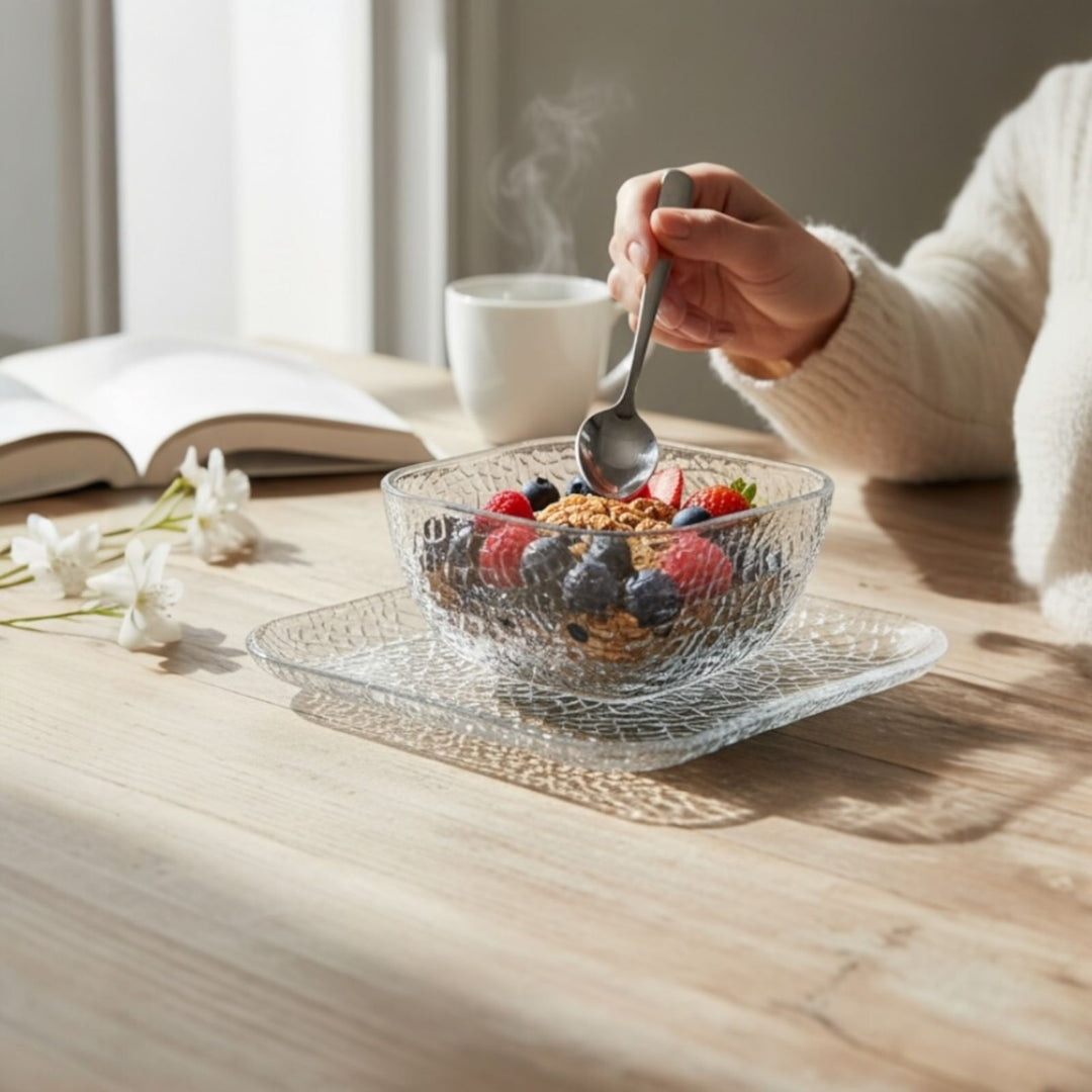 Royal Crystal Ribbed Dessert Bowl & Plate Set -12 Pieces