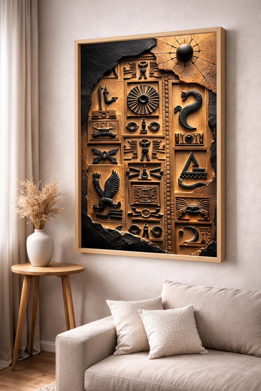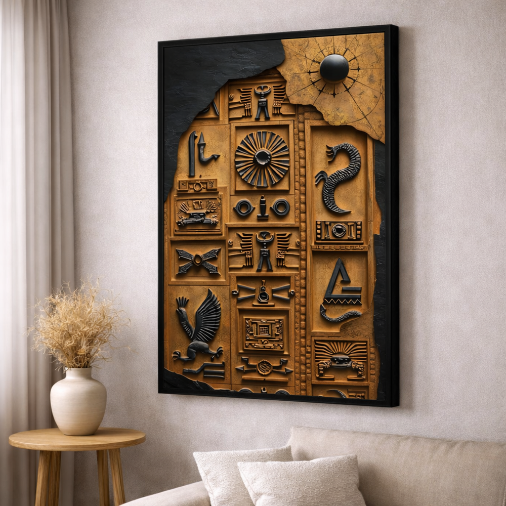 Ancient Egyptian Hieroglyph Relief Canvas Wall Art