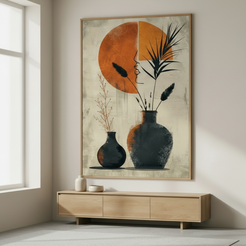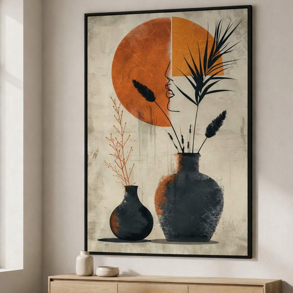 Abstract Vases & Sun Canvas Art